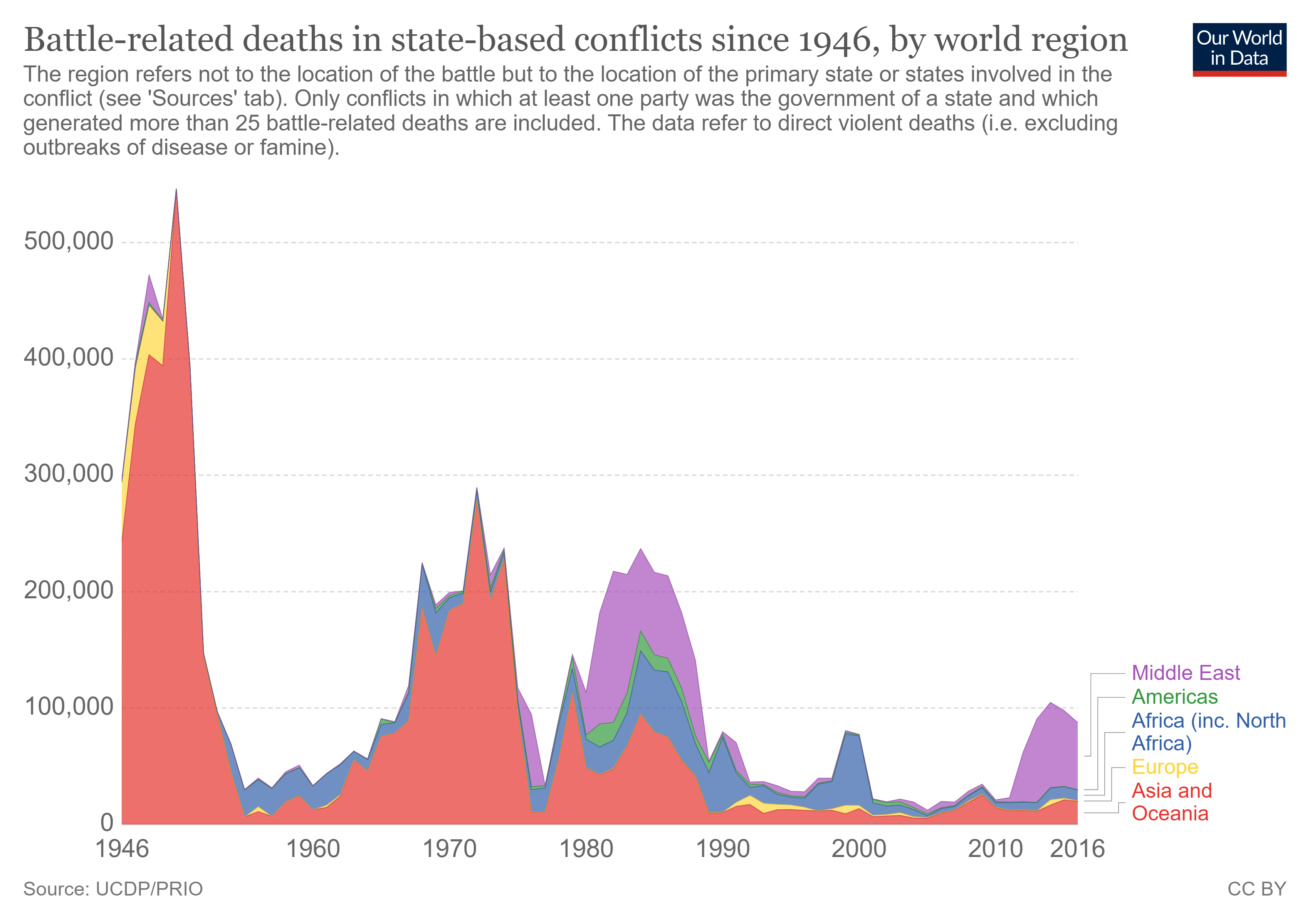 It can be agreed by just about anyone that nuclear weapons are the most terrifying ever invented. They have the power to instantly kill thousands of people and many more afterwards. Even though these weapons have these abilities, they haven't been used since the end of World War II. Prior to the invention of nuclear weapons, tens of millions have died in war. After the invention, War-Related deaths decreased dramatically and we haven't been under the threat of another world war in years.